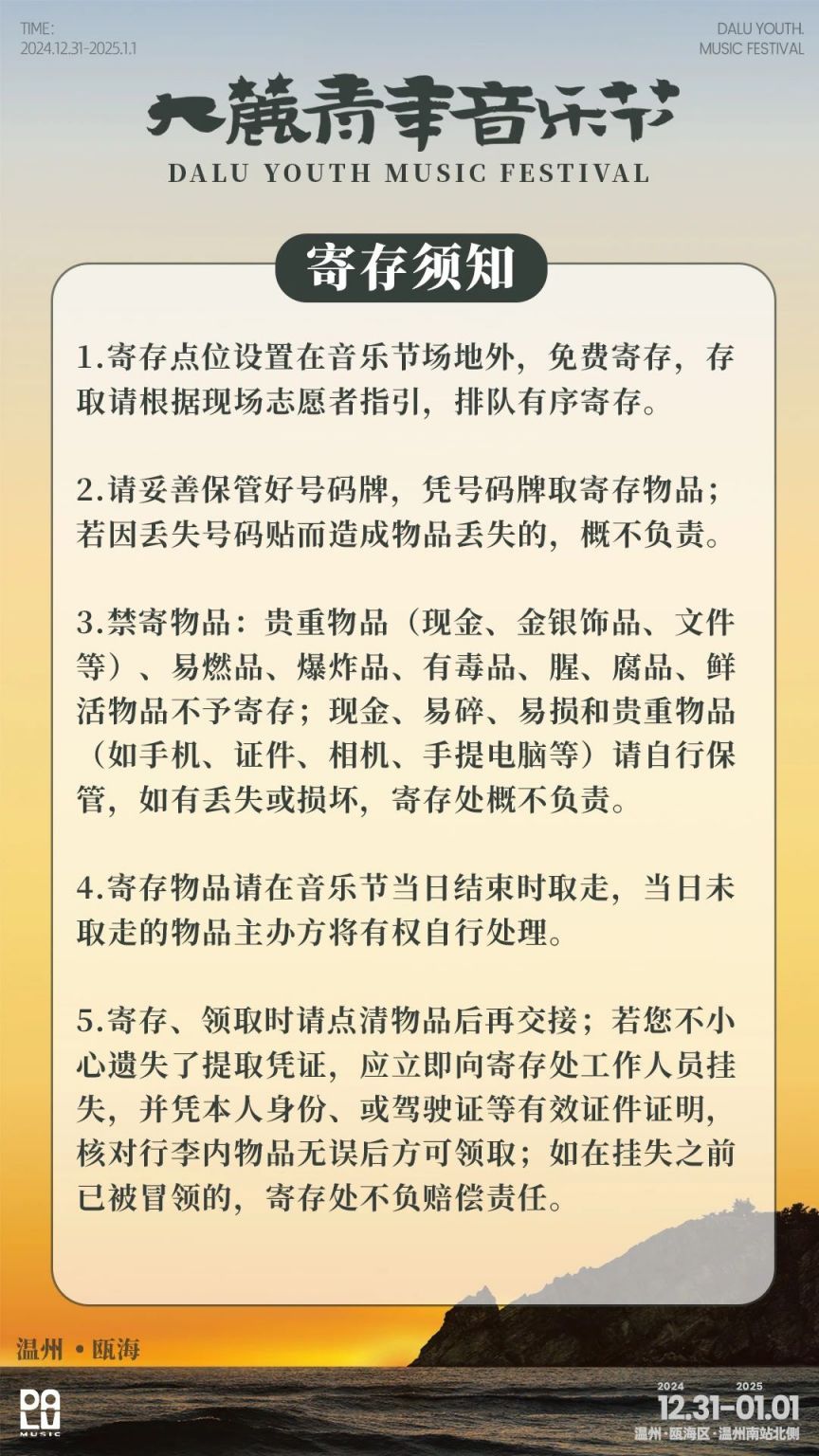 2025温州大麓跨年音乐节物品寄存地点+规定