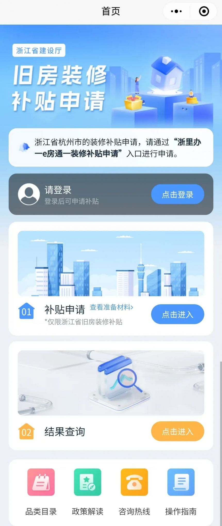 即日起至2025年12月31日,进入“浙里旧房装修”微信小程序,点击“补贴申请”,进入申请界面后按照提示填报。