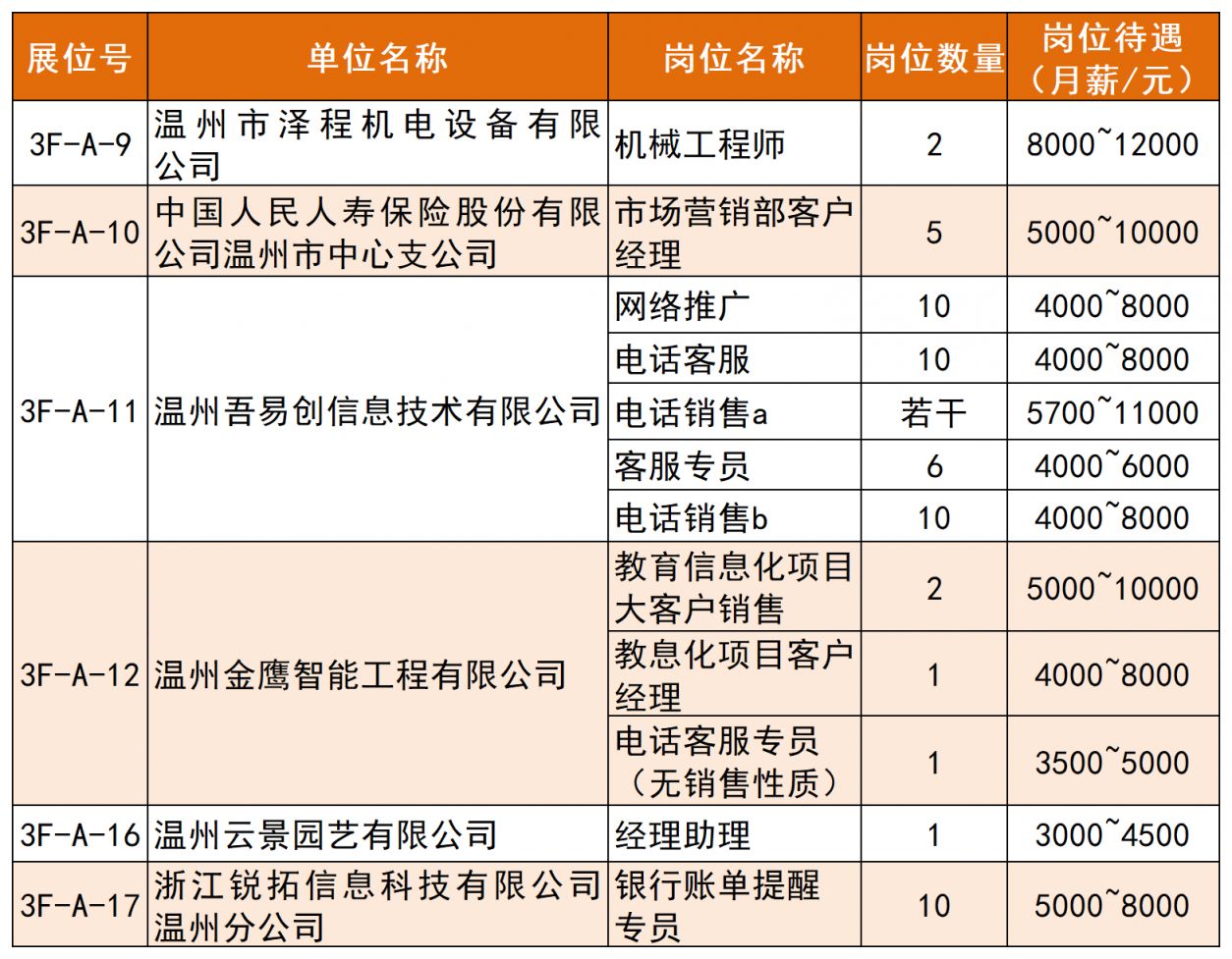 部分参会企业及岗位