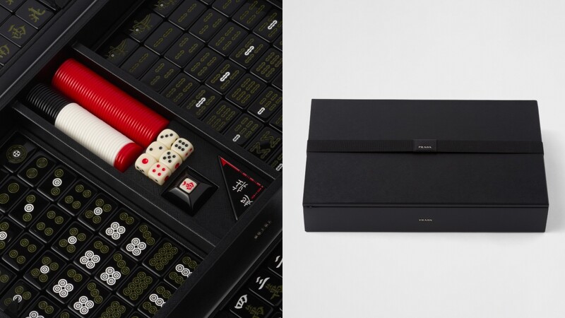 皮革麻将组 NT215,000 Prada推出的麻将组以品牌经典标誌的黑色系打造,另外搭配上Saffiano皮革製作收纳盒,整组散发俐落简约的时髦感。