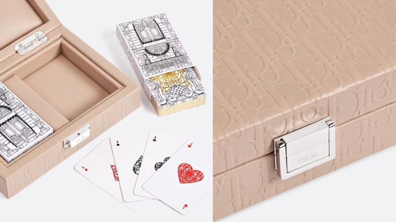 扑克牌收藏盒 NT70,000 优雅的Dior连扑克牌都散发仙气!Dior先生在回忆录中写道:以此为灵感推出扑克牌组,以30 Montaigne专门店外墙纹理作为印花,并搭配上Dior老花压印的皮革收纳盒。