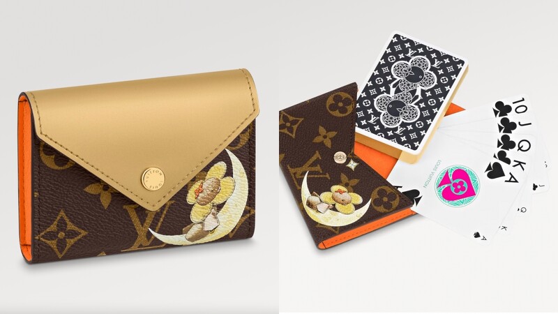 Vivienne Moon 扑克牌及随身包 NT19,200 这款Vivienne Moon扑克牌搭配精緻的插画和金色亮面饰边,奢华感拉满,搭配的随身包以皮革和Monogram帆布製作,还有可爱的玩偶与弯月图案点缀。